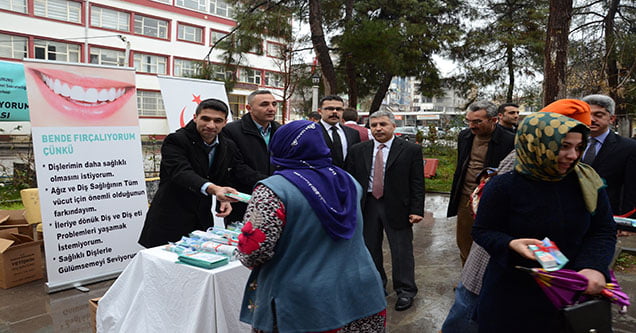 Sağlık Bakanlığı tarafından ülke genelinde sürdürülen ‘Bende Fırçalıyorum” kampanyası kapsamında Şanlıurfa Kamu Hastaneler birliği Siverek Ağız ve Diş sağlığı merkezi tarafından ilçenin Hürriyet caddesi üzerinde bulunan Lezgo Parkında kurulan stantta halka ve öğrencilere 5 bin addet ücretsiz diş macunu Kaymakam Hamza Erkal, Belediye Başkanı Avukat Resul Yılmaz, AK Parti ilçe Başkanı İlhan Çelik daire amirleri ve diş sağlığı merkezi doktorları tarafından dağıtıldı.