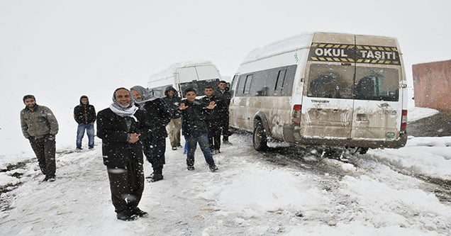 Öğrenci servis sürücüleri ve öğrenciler yaklaşık üç saat yolda kaldıklarını ifade ettiler. (Haber: Şükrü Dolaş)