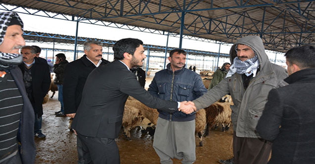 İlçe başkanı ziyaretleri kapsamında önce ki gün hal pazarı ile canlı hayvan pazarı esnaflarını ziyaret ederek esnafların sorunlarını dinledi, ilçenin sorunları hakkında esnafla fikir alışverişinde bulundu.