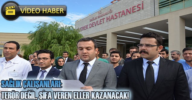 Hastane çalışanları adına basın açıklamasını okuyan hastane baştabibi Uz. Dr. Muhammed Bahaddin Durak şu bilgilere yer verdi: “Bizleri bugünlere getiren ve gece, gündüz demeden sağlık hizmet sunmaktan onur duyduğumuz siz değerli vatandaşlarımız; Haziran ayından bu yana tırmanışa geçen saldırılarıyla, genç – yaşlı, çocuk – bebek demeden tüm halkımızı hedef alan eli kanlı terör örgütü, sağlık çalışanlarımıza, ambulanslarımıza ve hastanelerimize yönelik alçakça saldırına devam ediyor.