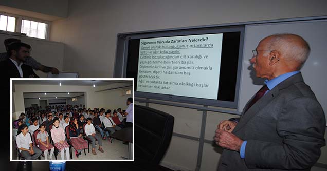 Şanlıurfa’nın Siverek ilçesinde ortaokul öğrencilerine yönelik ‘sigara ve sağlığa zararlı maddeler’ konulu panel düzenlendi.