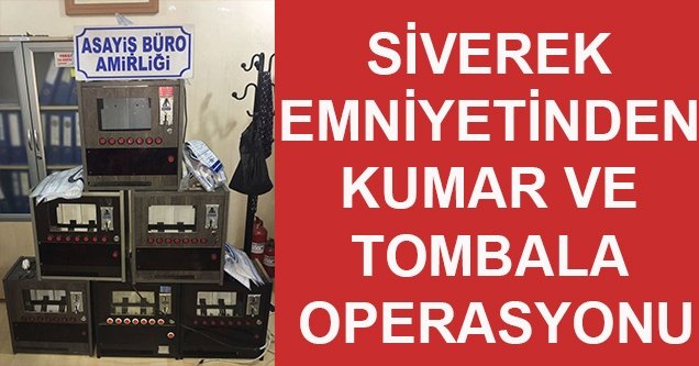 Siverek İlçe Emniyet Müdürlüğünce kumar ve tombala oyunlarının oynanmasının engellenmesine yönelik yapılan operasyon kapsamında ilçe genelinde kumar ve tombala oynatıldığı öne sürülen işyerlerinde arama yapıldı. Yapılan aramalarda toplam 6 adet sigaramatik, 35 paket tekel bandrollü sigara ve makinelerde 441 lira madeni para ele geçirildi.