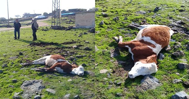 Şanlıurfa’nın Siverek ilçesinde elektrik akımına kapılan inek telef oldu.