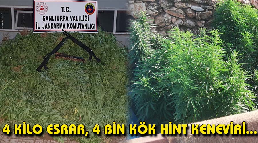 Şanlıurfa’da jandarma tarafından düzenlenen operasyonlarda 4 kilo 450 gram esrar ve 4 bin 198 kök keneviri ele geçirildi.