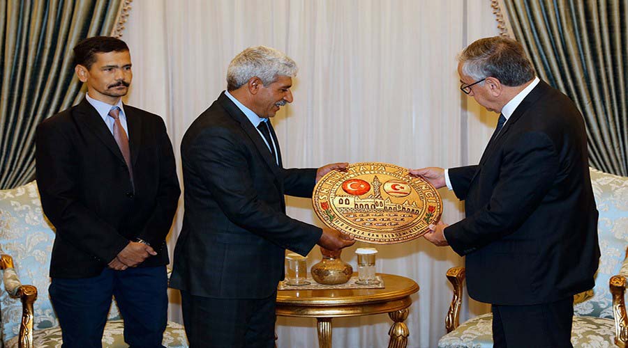 Kabulde, Türkiye’den gelen dernek başkanları, Cumhurbaşkanı Akıncı’ya çeşitli hediyeler verirken Şanlıurfa Şube Başkanı İbrahim Dizlek, Akıncı’nın isminin yer aldığı bakıra işlenmiş Balıklıgöl manzarası sundu.
