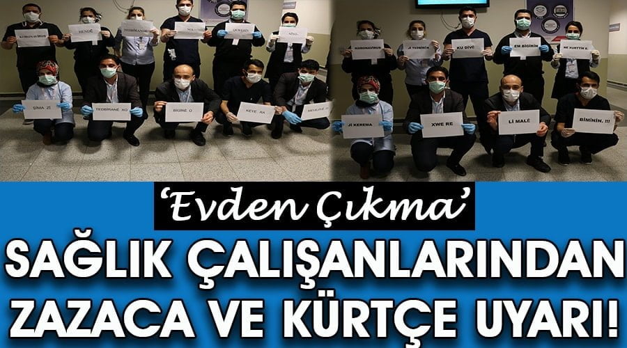 Ülkenin farklı hastanelerindeki sağlık çalışanları vatandaşları evden çıkmamaları konusunda uyarırken Siverek Devlet Hastanesindeki çalışanlar Zazaca ve Kürtçe dilinde yazdıkları yazıyla ‘Koronavirüs hendê tedbîran de ma quvetin nîyo. Şima zî tedbîranê xo bigîrê u keye re mevejîye’ ve ‘Koronavirüs ji tedbîren ku divê em bigirin ne xuttir e. Ji kerema xwe li malê biminîn.” diyerek uyarıda bulundu.