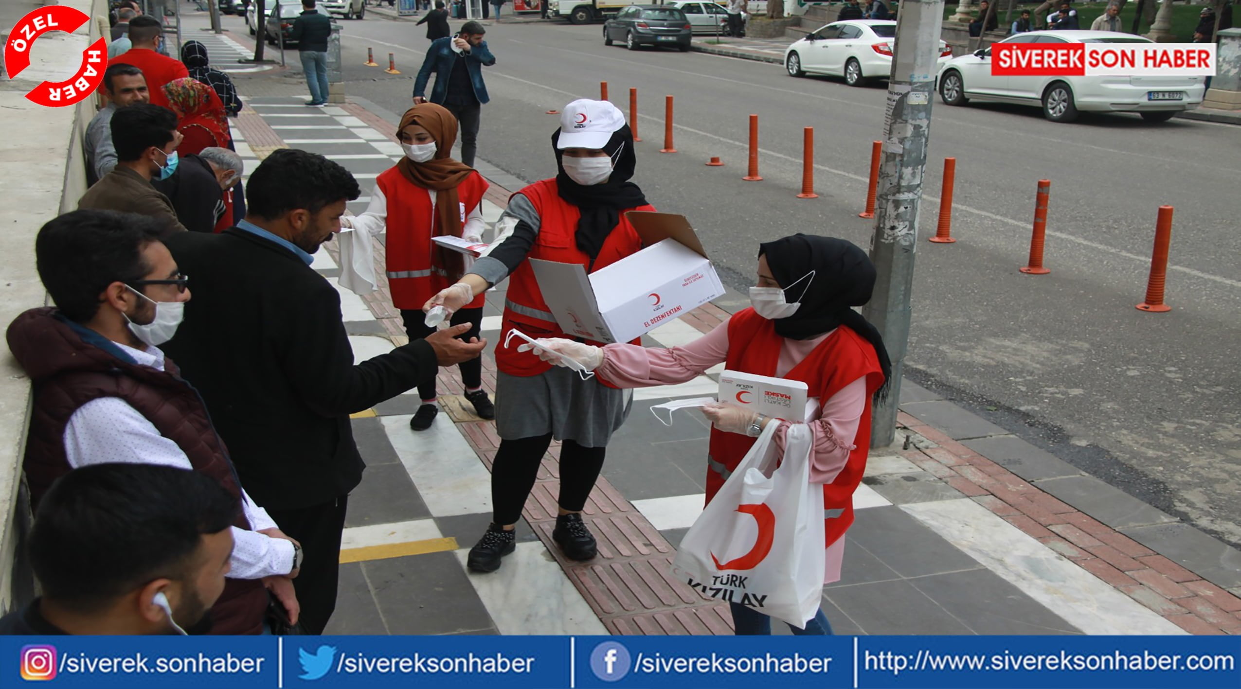 Şanlıurfa’nın Siverek ilçesinde korona virüs ile mücadele kapsamında Türk Kızılay’ı gönüllüleri tarafından vatandaşlara maske ve dezenfektan dağıtıldı.