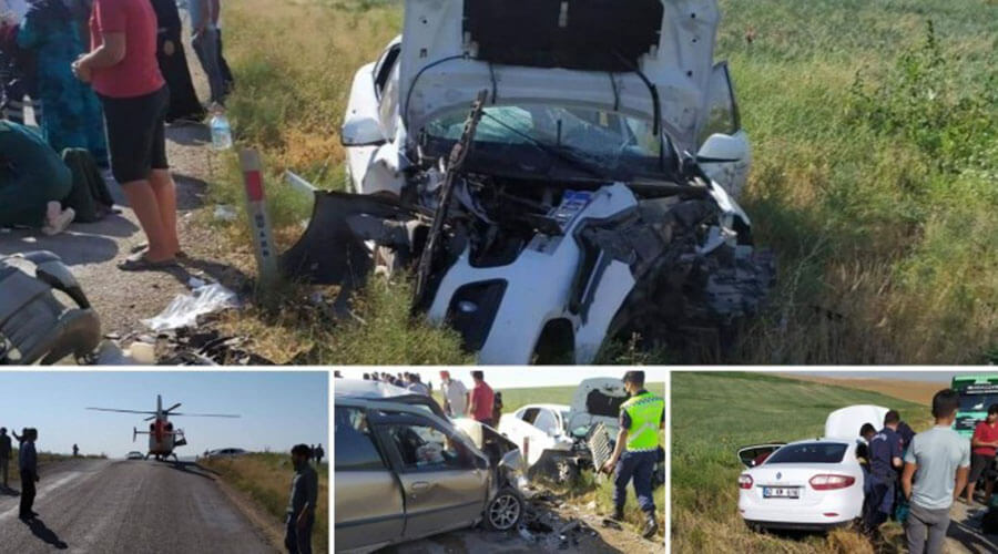 Şanlıurfa’nın Siverek ilçesinden mevsimlik tarım işçisi olarak çalışmaya gidenleri taşıyan iki otomobilin çarpışması sonucu 9 kişi yaralandı.