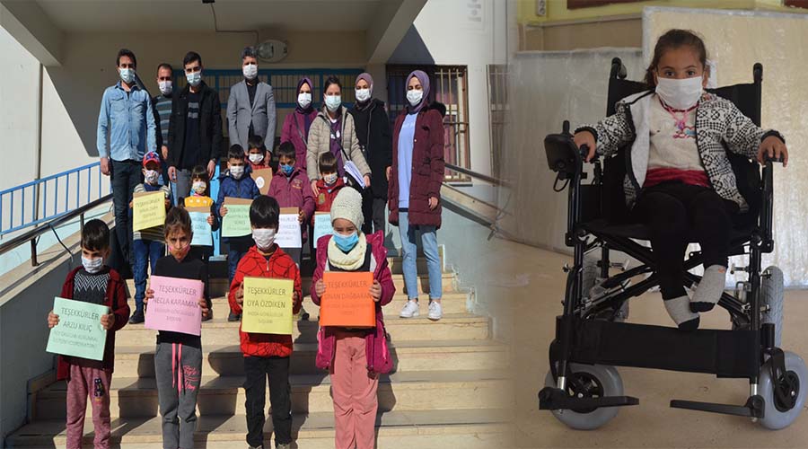 Kadıköy Belediyesinin öncülük ettiği yardım kampanyası kapsamında gönüllülerce temin edilen akülü sandalye ile diğer malzemeler, okulda eğitim gören öğrencilere dağıtıldı.
