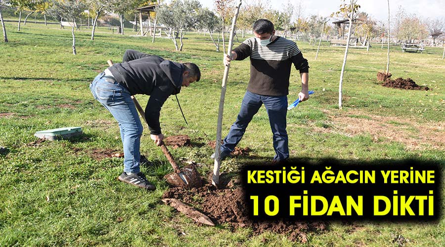 Şanlıurfa’nın Siverek ilçesinde parktaki ağacı kestiği öne sürülen şüpheli, cezasını 10 fidan dikerek ödedi.
