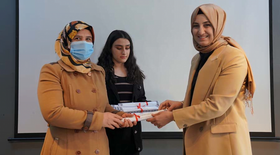 Eğitimi tamamlayan kursiyerlere sertifikaları verilirken projeye destek verenlere de teşekkür belgesi takdim edildi.