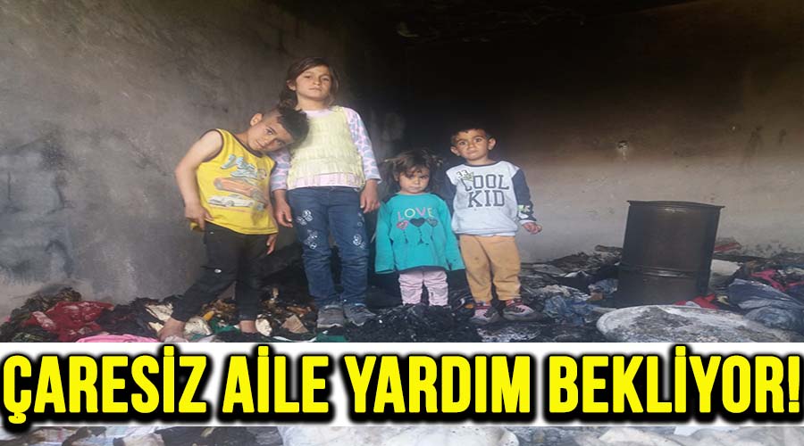 Evdeki malzemelerin de tamamen yandığı yangın sonrası 8 çocuklu Çakmak ailesi yardım bekliyor.