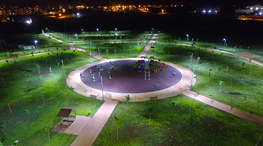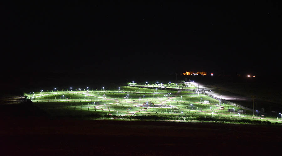 Işıklandırma çalışmalarının büyük bir kısmının tamamlandığı devasa projede alanın tamamı çimlendirildi.