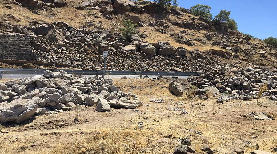 Siverek – Adıyaman kara yolu 25. kilometresinde toprak kayması sonucu istinat duvarı yıkılırken taş ve kaya parçaları yolu kapattı.