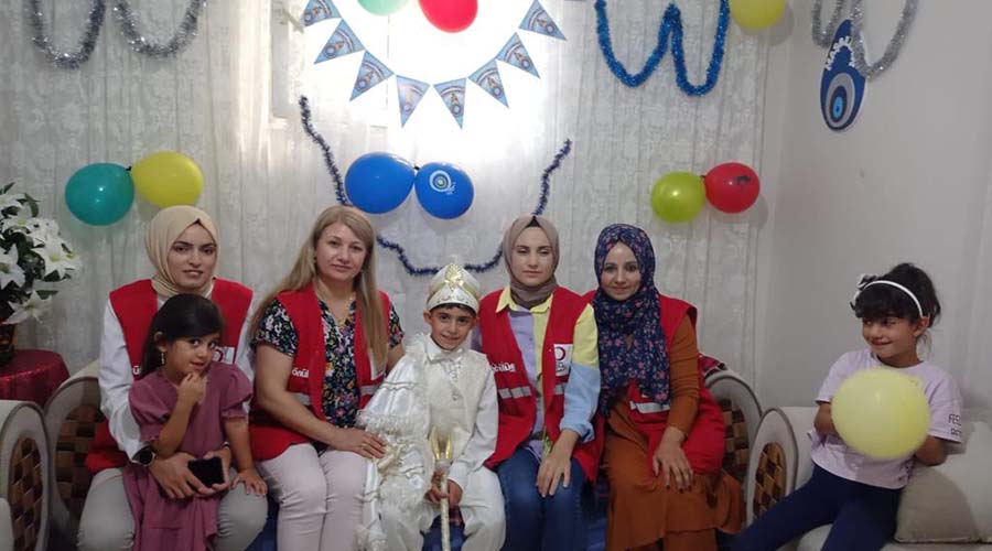 Sünnet olacak çocuklara kıyafet ve çeşitli hediyelerle yanlarında olan Kızılay gönüllüleri, çocuklar ve aileleriyle mürvetlerine tanıklık etti.