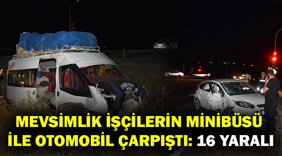 Şanlıurfa’nın Siverek ilçesinde, mevsimlik işten dönen işçilerin olduğu minibüs ile otomobilin çarpışması sonucu 16 kişi yaralandı.