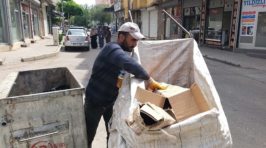 Çöpten karton ve atık madde toplayan baba, “gücüm kalmadı,çocuklarım yarı yok yarı aç yasıyor.” dedi.