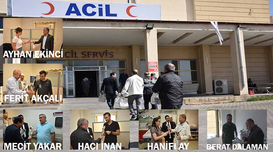 Elik ile görüşmenin ardından hastane birimlerini ziyaret eden yönetim, doktor ve sağlık çalışanlarına emekleri için teşekkür ederek karanfil ve tatlı ikramında bulundu.