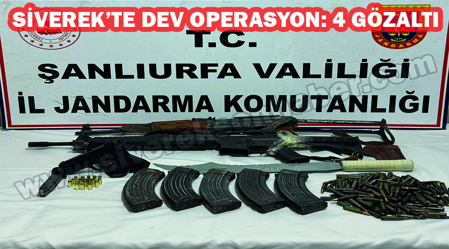 Şanlıurfa’nın Siverek ilçesinde, İlçe Jandarma Komutanlığı ekiplerince düzenlenen operasyonlarda uzun namlulu silah, şarjör, mühimmat, kenevir bitkisi ile hassas terazi ele geçirilirken 4 zanlı yakalandı.