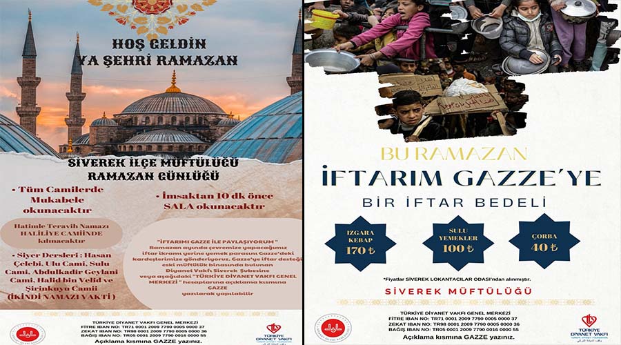 Açıklamada şunlar kaydedildi: “İftarımı Gazze ile paylaşıyorum projesiyle Ramazan ayında çevremize yapacağımız iftar ikramı yerine yemek parasını Gazze’deki kardeşlerimize gönderiyoruz. Gazze’ye iftar desteği eski müftülük binasında bulunan veya ‘Türk Diyanet Vakfı Genel Merkezi’ iban hesaplarına açıklama kısmına ‘Gazze’ yazılarak yapılabilir.”