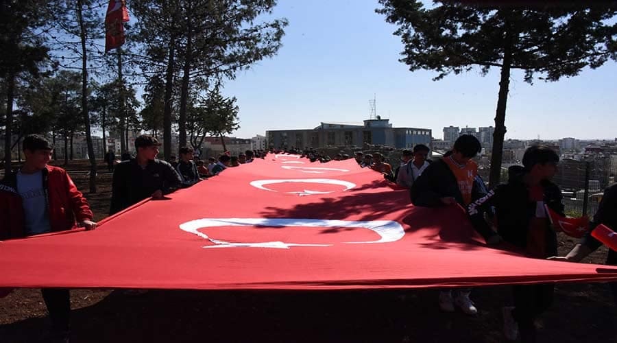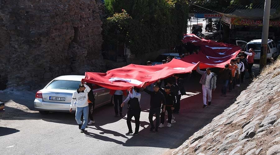 Siverek’i İl Yapma ve Kalkındırma Derneği ile TÜGVA iş birliğince düzenlenen etkinlikte Cumhuriyet’in 101. kuruluş yıl dönümü dolayısıyla 101 kişi bayraklarla kaleye çıktı.