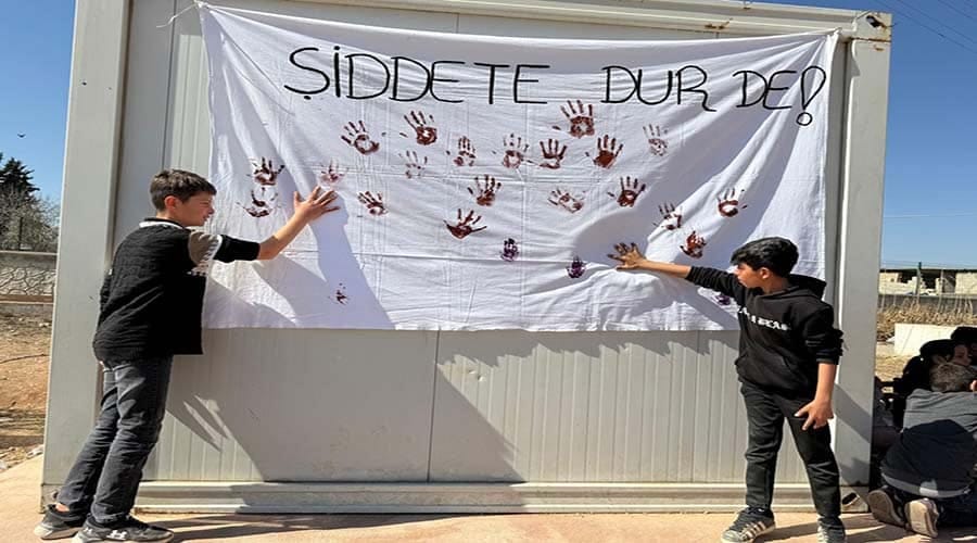 Öğrenciler de etkinlik kapsamında hazırladıkları pankartlar ve afişlerle şiddete karşı mesajlar verirken, şiddetsiz bir toplum için birlik ve dayanışmanın önemine dikkat çekti.